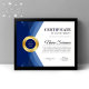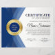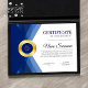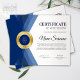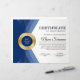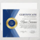 Professionell modern mall för flygcertifikat för belöning av prestation (blue & guld) med en guld-beskrivning på "certifikat", blå och guld-medalj med löv-design och mjuk grått-bakgrund. Anpassa till dina önskemål.