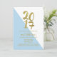 Chic, inbjudan till studentfest av det moderna himmel-blått och guld-färg-blocket. Eleganten inbjudan har en himmel blå färg-blockbakgrund, faux guld-sidnummer och guld-text. Denna inbjudan till modern studentfest är perfekt för högskoleexamen och högskoleexamen. Andra färg och matchningsprodukter finns tillgängliga med den här designen i Carded Design Store.