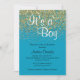 Vackert blått och guld glitter sprinkade pojke duschinbjudan.