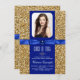 Söt royalet blått och guld glitter studenten. Detta vackra blått och guld studenten-meddelande anpassas enkelt med foto- och händelseinformation i teckensnittet stil och färg, och med den ordalydelse du väljer. Du kan också flytta menyfliksområdet eller ta bort dem på den här eleganten blå och guld studenten.