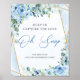 En romantisk boho bröllop bordsskylt med dammig blåa blommor, eukalyptus greenergiy och en aning guld glitter i ram skapar en viskisk atmosfär och elegant. Denna kombination av färg och inslag kan framkalla en känsla av natur och sofistikering och tillföra en unik och förtjusande charm till bröllop-dekorationen. Blandningen av mjuka blå nyanser, lush grey och subtle guld-accents kan skapa ett visuellt bedövande och sammanhängande utseende för bordstecknet, vilket förbättrar den övergripande estetiken hos bröllop firande Kontakta mig för matchande artiklar eller för anpassning, Ro ©