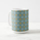 Mugg har ett mönster i sidled i blått och guld av konstnären Jayne Wilson.