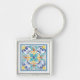 Blått och Gult - Bloom Fyrkantig Silverfärgad Nyckelring