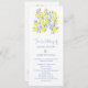 Det här moderna ceremoninekortet har en slående botanisk illustration med djärv gult löv och blått grenar, som skapar en levande och konstnärlig brännpunkt. Den minimalistiska layouten användor en ren vit bakgrund och elegant serif typsnitt, som ser till att alla detaljer om ceremonier och information om bröllopsfesten är lätta att läsa. Den nya paletten och contemporaryn i färg gör att den här kortets perfekt för vår eller sommartid i firande och ger dig en trevlig och snyggt accent på evenemanget. Innehåller ett hjärtligt tacksamhetsmeddelande från paret.