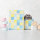 Ett slående in pappert designat med ett kvadreramönster i blått och gult tonar.