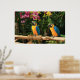 Fotografisk bild av två blåa och Gult Macaw-fåglar