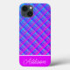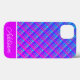 Iphone case har en blå och lila övertoning i mönster med tjockt lila rand och tunt vitt rand med anpassade namn.
