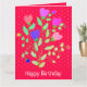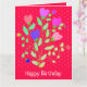 Dekorativt hjärta flödat och designat födelsedagskort för polka, vikt stil, den ljusa rosan och rand kan ändras till vilken färg som helst. Texten kan vara personlig inuti och ut till alla meddelanden till kostym, oavsett tillfälle. Alla inslag kan tas bort.