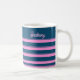 Börja din dag med en kopp färg med det här blåa och rosa rand personlig-kaffet mugg. Mugg har en snyggt som är väl utformad och tillför en roligt och ett modernt tryck till ditt kaffe- eller teprogram. Anpassa den med ditt namn eller initialer för en unik beröring, skapar den som en perfekt för födelsedagar, helgdagar eller daglig använda.