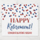 Lycklig pension-anpassningsbar, mousserande vin-flaska-etikett med blå och röd glitter-mönster-konetti