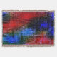 Bild med färgad och repade prickar där en röd och blå nyans med mörkaste delar och starka toner av färg som kan ge intryck av viss oljefärg.
