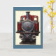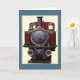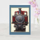 vintage tåg i rött och blått med hjul, fönster, näsa, nöt och bultar.