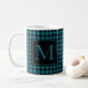 Blått och svart buffalo-belagd monogrammad kaffe Mugg. Redot att vara personlig med din familj från början.