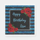 Blått och svart Rand Glitter Röd ros födelsedag Pappersservett