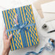 En elegant med färg varm gult och himlar blå i ett unikt rand och stagnerad mönster. Perfekten som omsluter din unika gåva!