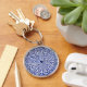 Blått och vit Keychain Rund Silverfärgad Nyckelring