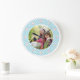 Blått- och vitpolkaen pricker personligfotoet stor klocka