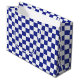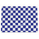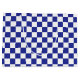 Abstrakt digital grafik med blå och vita fyrkanter i en schackad form.