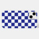 Abstrakt digital grafik med blå och vita fyrkanter i en schackad form.