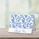 Fina asianinspirerade blåblommor och blommor från vit ros illustrerar bröllop Tackkort.