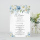 Blått och vitt blomsterkort för vattenfärg, Bröllopsprogram.