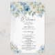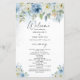 Blått och vitt Bröllopsprogram för Blommigt