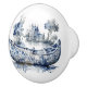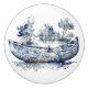 Blått och vitt fartyg från Delft stil med byscen Knopp