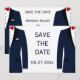 Blått och vitt gaybröllop Spara datum-kort Datumet
