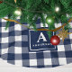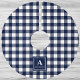 Blått och vitt Gingham Play Monogram Julgransmatta Borstad Polyester