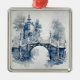 Blått och vitt landskap i Delft stil med blå växter, träd, flod, vacker bro och en liten dekoration för kyrkan för alla som gillar Delft stil inspirerade till dekoration. Det är en underbar gåva till jul, födelsedagar osv. och du kan dekorera ditt hem med denna vackra, unika design.