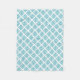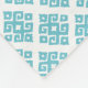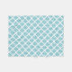 En moorish nyckel-stamdamm i stil upprepar en kvadratisk mönstrad filt i vattenblått och vitt nav. Mönster designad av Sarah Trett.