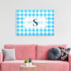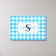 Blått och Vitt Rutigt Initialmonogram med Namn Canvastryck
