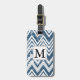Blått och vitt skäggigt monogram bagagebricka