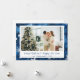 Skicka varma vinterhälsningar med detta eleganta och platta julkort, med en rik blå bakgrund dekorerad med ömtåliga vita snöflingor och mjuka bokeh-ackent. Designad som ett ensidigt platt kort, erbjuder detta exemplar ett rent, modernt format som visar ditt favoritfamiljefoto i en vacker inramad layout. Under bilden läggs en anpassningsbar julhälsning och familjenamn till en personlig och hjärtlig touch.