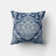 Den här kudden har en kompakt vit mönster-effekt med snöre-effekt mot en rik blå bakgrund. Utformningen är symmetrisk, med en central medallion omgiven av känsliga snöre-liknande blommigtar. Eleganten och den tidlösa designen gör den till en perfekt som läggs till i vardagsrummet eller sovrumsdekorationen, vilket ger en aning sofistikering och stil.