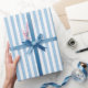 Blått och vitt strimlat Mönster Presentpapper