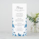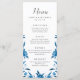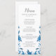 Blått och vitt vattenfärgsmeny blommigt bröllop meny