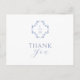Chic och modern enkelhet. Det här minnesvärda "tack"-vykortet har en underbar uppsättning av contemporary typsnitt och blommigt par monogram, mot en skarp vit bakgrund.