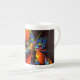 Blått Orange Blommigt Modern Abstrakt Art Mönster Benporslin Mugg