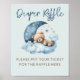 Blå Nalle över Måne babyduschen Poster. Lägg till lite stollig och roligt till din barndusch "Över Måne" med den här vackra blöjan! Med en söt nalle som sover fredligt på ett halvmånsfärande måne, omgivet av mjuka moln och blinkande stjärnor, är detta tecken perfekten för att vägleda dina gäster att delta i den dystra raffeln. Den lekande frasen "Diaper Raffle, Put Your Biljett for the Raffle here" garanterar att dina gäster vet exakt var de ska lämna biljett, skapar ett skarpt och njutbart bråk till din babydusch.