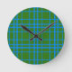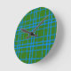 Blått på Grönt Tartan Play Mönster Design Rund Klocka