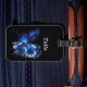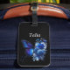Snyggtens svarta bagageetikett har en AI-teknik som genererar digital konst av en vacker blå fjäril med blommigt bouquet. Anpassa med namn eller monogram.
