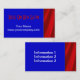 Yrkesmässiga och flott visitkortar med röda förhängear för en satäng ser gränsen, och kontrastera, dynamisk kunglig blåttbakgrund ger en trevlig patriotisk look. Underbaren för de kommande politiska valen, Etc. tillfogar lätt ditt företagsnamn och ditt namn eller annan text på bekläda av dessa eleganten, snyggten, konstnärliga designade kort. På bekläda visas röd text, och vittext och på baksidaen är vittext, och du kan lätt ändra stilsortsstilen och att färga såväl som blåttbakgrunden. Klicka precis på "skräddarsy den" och klickar därefter på "redigerar", och "färgar bakgrund" som därefter ändrar blåtten. Personifiera med din egna text lätt både på bekläda och på baksidaen. En enkel, men klassikerprofessionell tittar det befordrings- kortet som var underbart för någon affär och ockupation.