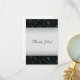 En enkel och elegant design som presenterar en bakgrund av svarten med en turkosblåttblommönster, och en vit, centrerar randen med en svimmafortsättning av blommönstret.
