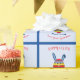 Den här Påsk-omslutningen i roligt är helt anpassade, skriv bara in rutorna om du vill ändra hälsning och namn eller annan text. Standardvärdet i det röda skriptet är "GLAD PÅSK" och "Kärlek från Grandma". Bakgrunden är blå, och det fuktiga påskägget har rand och mönster i röd blått och gult.