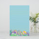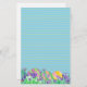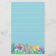 Ett söt blått och gult invändigt papper för Påsk med dekorerade ägg bland de lila krokblommor som illustreras med vattenfärg. Festivt papper för helgdag brev, penna brev, journalföring och mycket mer!