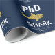 Roligt, novelty, Phd-emballering papper med mönster av hajar och en guld glitter, mörk blått och vit design. Du kanske har hört en giftig ton om en haj. Den här inslagningen är papper för din PhD-haj. Skaffa den här annorlunda och oväntade presentfigurationen, idag. (Föreställ er hur deras ansikte ser ut när de ser det.) Blått PhD Studenten-blått för Guldet semesterdagar i Glitter | ©Melissa Patton - Artist/Illustrator