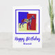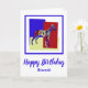 Kläder/italiensk abstrakt av silhouette-hund på ljusröda, blå och gult rektanglar. Roligtens födelsedag på kortets framsida tillsammans med "Hoppas att din födelsedag är precis som du. PAWESOME kan ändras till vad du vill.