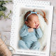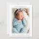 Pojke fotoblått födelseattentat med ditt favoritfoto på framsidan. En vit övertoningsfotoövertäckning mjukar upp kanten på fotot - den här effekten kan stängas av inuti designen verktyg. Anpassadet namn är över fotot med ljusblått och födelsestatus (datum, vikt och längd) under fotot. Mellan små ljusblå hjärtan kan färg också anpassas med ett färg som matchar ditt foto eller din gender. Baksidan är täckt med små ljusblå prickar skapar ett sött och klassiskt mönster. Anpassa och beställ din idag, en söt introduktion av din nyfödda och en keepy för familj och vänner.
