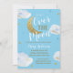 Blått pulver i måne och babyskor i Guld Inbjudningar